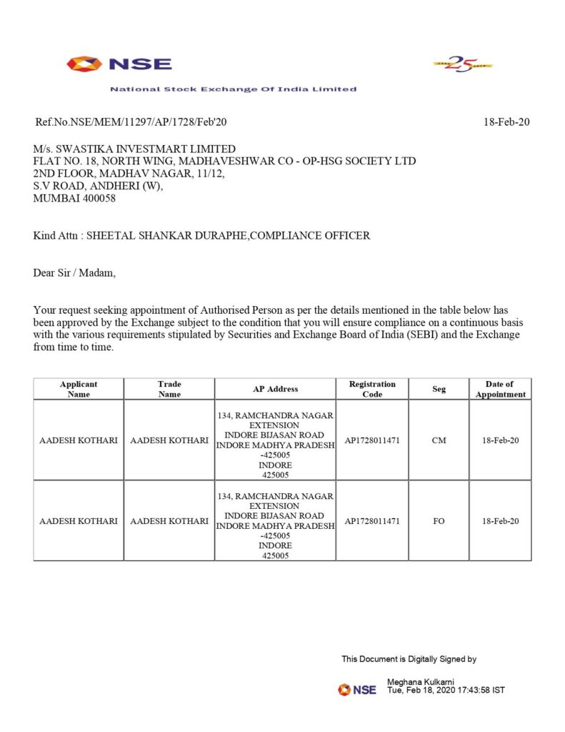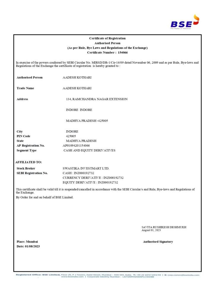 * Swastika is registered with major exchanges like NSE, BSE, MCX, NCDEX, and NSDL.