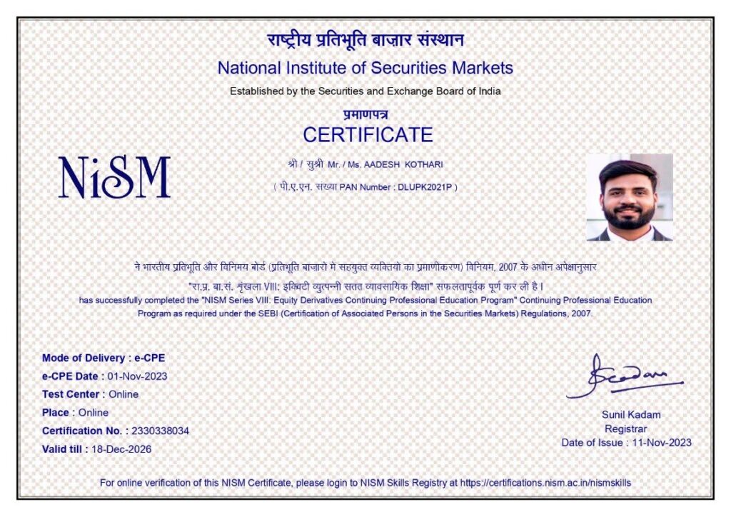 Our company is SEBI REGISTERED since 1992, and our office is registered with NSE, BSE, MCX, NISM.
