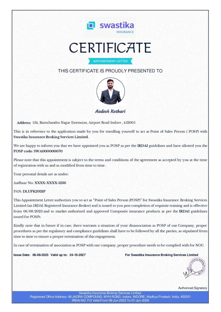 * Swastika Insurance Brokering Service Limited is Registered with IRDAI (Insurance Regulatory and Development Authority of India.)